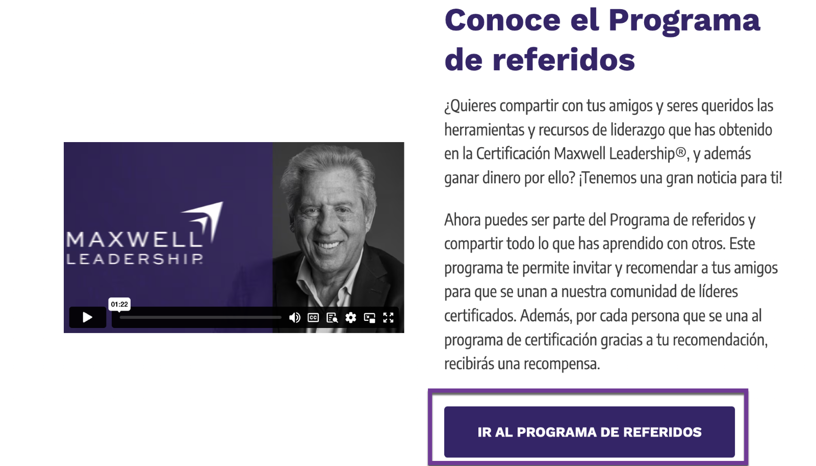 En la página de certificación, desplázate hasta llegues a conoce el programa de referidos y dé clic al botón “ir al programa de referidos”.