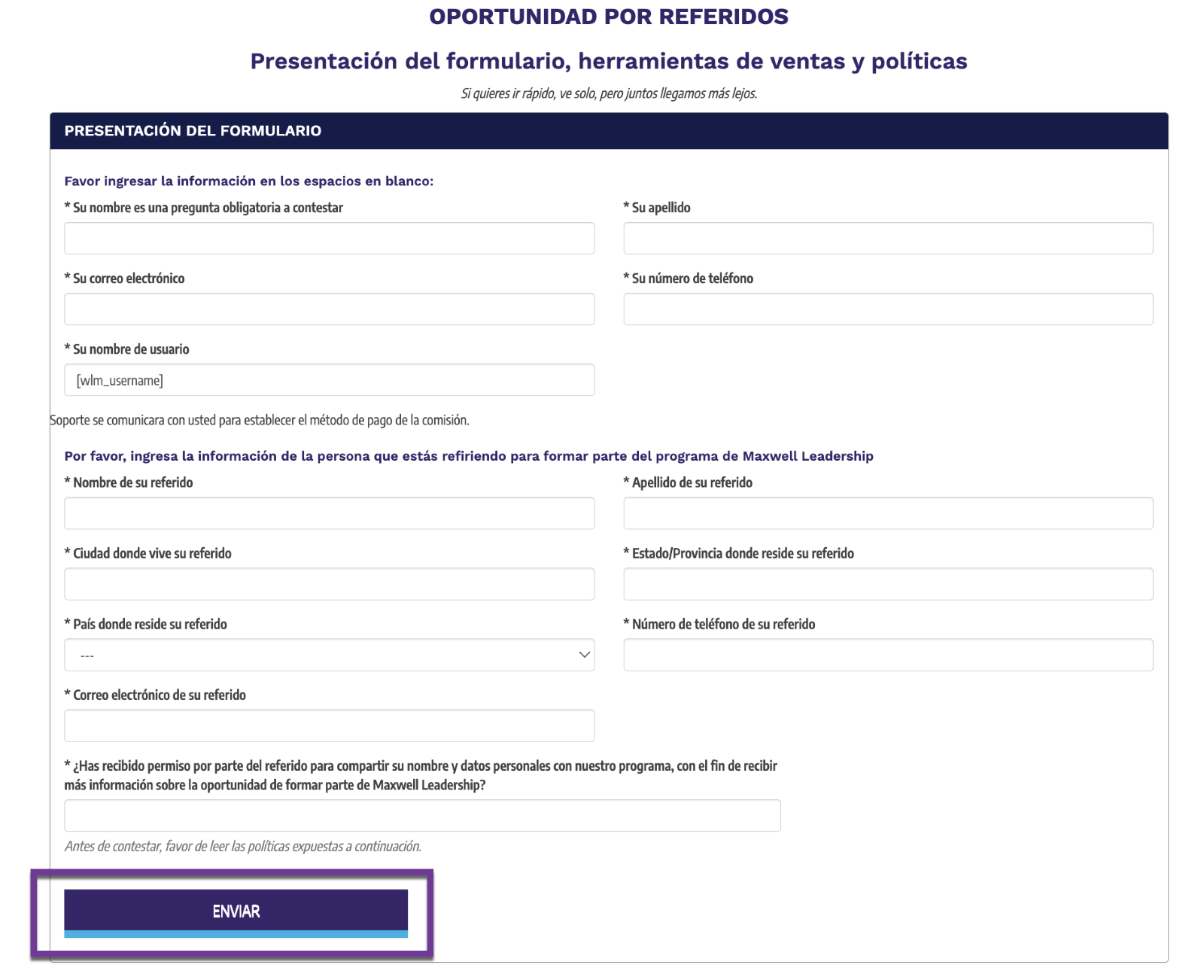 Dé clic a “ingresa al formulario”, para incluir tu información, la de tu referido y da clic en el botón enviar.